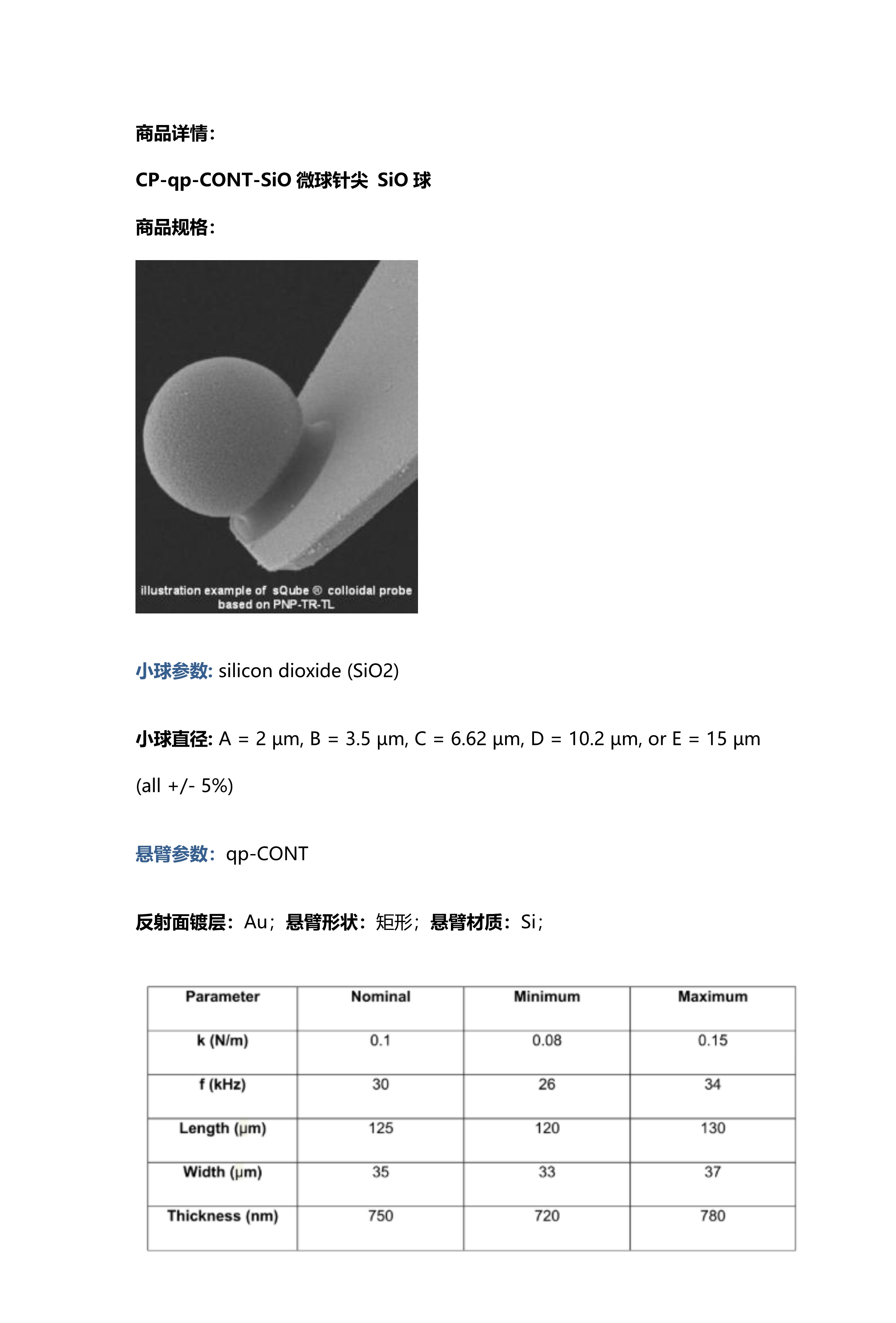 力学测试针尖/Tipless针尖